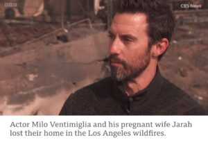 Milo Ventimiglia: Known for his roles in “Gilmore Girls” and “This Is Us,” Ventimiglia and his pregnant wife lost their home in the wildfires.