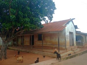 The enticing aroma of bean cakes, fondly known as Akara, filled the entrance of the building the Afon community regards as the Court. A bean cake vendor, commonly called Iya Alakara, operates just outside the open structure, beside the tarred road—a popular spot for small food businesses like hers. Several goats lounged peacefully in the shade of the court building, creating a striking contrast between the bustling activity of food purchase and the quiet neglect of the court facility.