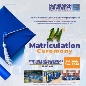 McPherson University, Seriki Sotayo, Ogun State has held its 14th Matriculation Ceremony, formally admitting 896 new students into its growing academic community.